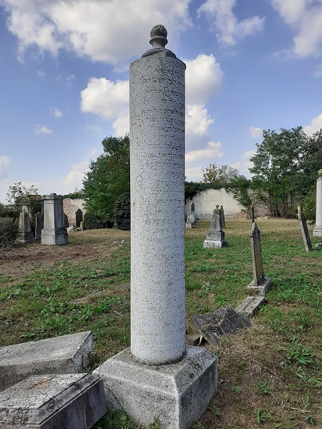 Poco lontano si alza la stele del Rabbino Maggiore Levi Elia Levi Deveali, cavaliere Mauriziano, nato nel 1811 e morto il 30 dicembre 1880. La stele riproduce il rotolo della Torah, la cui lettura e interpretazione fanno parte dei fondamenti del giudaismo. La Torah contiene il Pentateuco: i primi cinque libri della Bibbia con le leggi e i comandamenti dati da Jahwe a Mosè sul Monte Sinai e la storia d’Israele dalla creazione del mondo fino alla morte di Mosè. E’ scritta a mano su una lunga pergamena arrotolata attorno a due aste di legno provviste di manici e decorate con ornamenti metallici e una corona (leggi anche: Mani che benedicono fra tradizione e fantascienza). Per proteggerla, viene ricoperta di velluto o racchiusa in un cofanetto con due porte. Il Rabbino Maggiore Levi Elia Levi Deveali era presente allo sfortunato matrimonio celebrato il 5 giugno 1835, durante il quale crollò il pavimento della casa in cui si teneva la cerimonia, provocando la morte di 28 persone. Poco distante, una colonna ricorda la tragedia, non esistono tuttavia documenti relativi alle sepolture delle vittime.