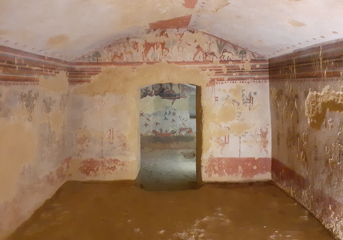 The necropolis of Tarquinia (Italy) includes over 6000 tombs: about 200 of those present a rich pictorial decoration. For the quantity and quality of the images and for their extension over the time – from the VII to the III century BC – it’s the most important depict necropolis in the Mediterranean area and since 2004 it has been included in the World Heritage Site by Unesco. The necropolis measures about 6 km in length and 3 km in width and it is divided into several locations named: Calvario, Primi Archi, Secondi Archi, area Scataglini, Doganaccia.