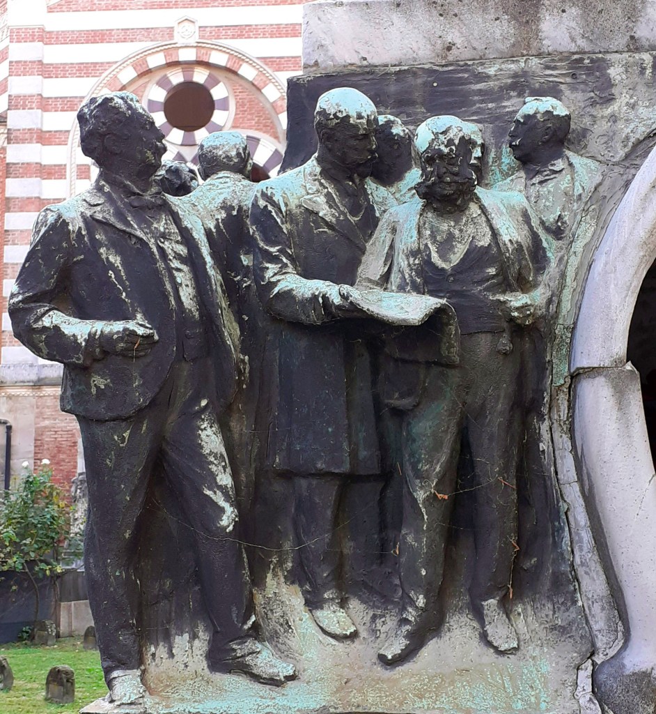 Nel 1904 la scrittrice Virginia Tedeschi Treves – per tutti Cordelia – commissiona allo scultore Ettore Ximenes e all’architetto Augusto Guidini la bella edicola nel Reparto Israelitico del Cimitero Monumentale di Milano (Il Cimitero Monumentale di Milano), in ricordo del marito Giuseppe Treves, scomparso all’improvviso a 65 anni il 5 settembre 1904.