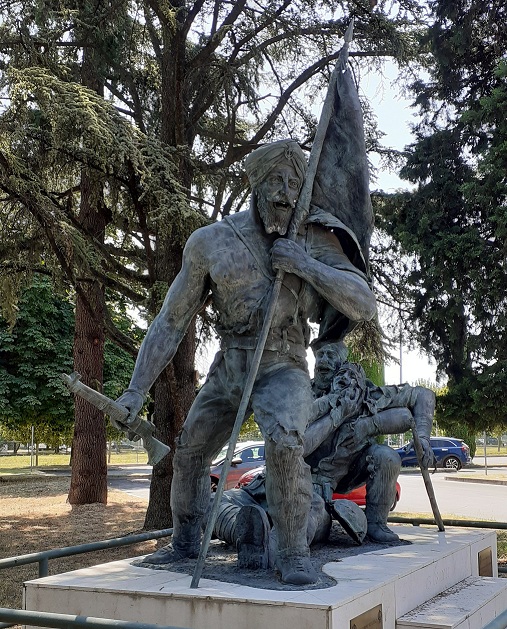 Ed indossano proprio il turbante i soldati in bronzo dell’enorme monumento lì accanto, realizzato nel 2011 dallo scultore Stefan Popdimitrov per la comunità Sikh, mentre soccorrono un italiano ferito.