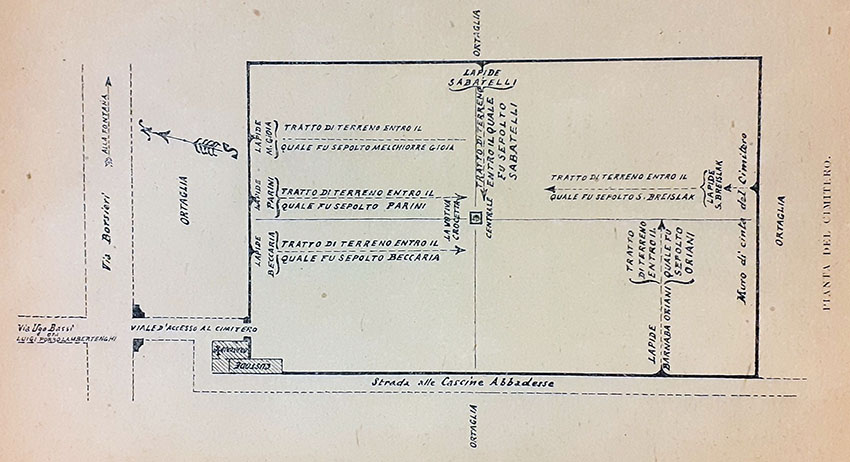 Nel 1911 per ricordare i tanti sepolti illustri si propone allora di progettare sul posto un monumento che conservi la memoria non solo del Parini, ma anche dello statista Melchiorre Gioia, dell’astronomo e matematico Barnaba Oriani, di Cesare Beccaria, giurista e filosofo, del pittore Andrea Appiani: un portico a emiciclo in cui riunire le lapidi dei cittadini illustri scomparsi e un giardinetto a copertura dell’ossario antistante.