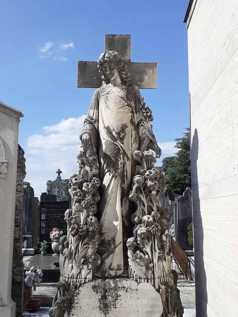 Mi limito a nominare l’enorme monumento per l’imprenditore Pietro Valentini, le cui vicende meritano un approfondimento a parte, opera degli scultori Silvio e Alessandro Monti, e concludo con la tomba Soliani-Pugnalini, opera di Carlo Vitali, realizzata nel 1927.