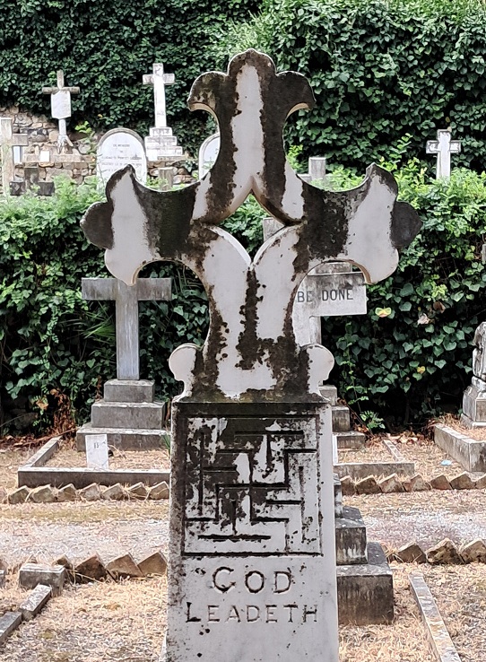 (Cimitero Inglese di Bordighera: croce con labirinto, croce celtica, croce ortodossa. Foto dell’autrice)
