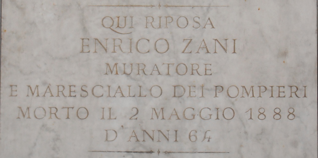 ![]() | Enrico Zani, maresciallo dei pompieri e muratore | https://storiedicimiteri.com/2017/06/17/enrico-zani-maresciallo-dei-pompieri-e-muratore-bologna-cimitero-della-certosa/ |