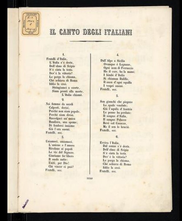 L’Inno, conosciuto anche come Fratelli d’Italia e Inno di Mameli, insieme con la figura istituzionale del Presidente della Repubblica e la bandiera tricolore è uno dei simboli dell’unità nazionale.