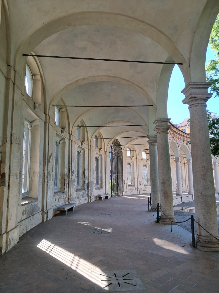 Nello stesso anno fu innalzato anche il grande porticato circostante, completato nel 1731. Le camere sepolcrali sottostanti la chiesa, infatti, pur essendo capienti dovevano essere periodicamente svuotate ed i corpi nuovamente sepolti nel prato circostante. Per evitare le continue operazioni, si decise quindi di creare nuove camere poste sotto al porticato: un’elegante figura ottagonale curvilinea, con 4 lati maggiori e 4 minori, per un totale di 416 metri. Fu completato nel dicembre 1725 grazie alla generosità del mercante in seta Giambattista Annone.
