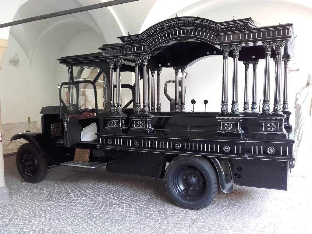 L’elegante autovettura elettrica Rognini e Balbo, per un ultimo viaggio di classe (Milano, Cimitero Monumentale). (The elegant Rognini e Balbo electric car, for a final journey in style (Milan, Monumental Cemetery).