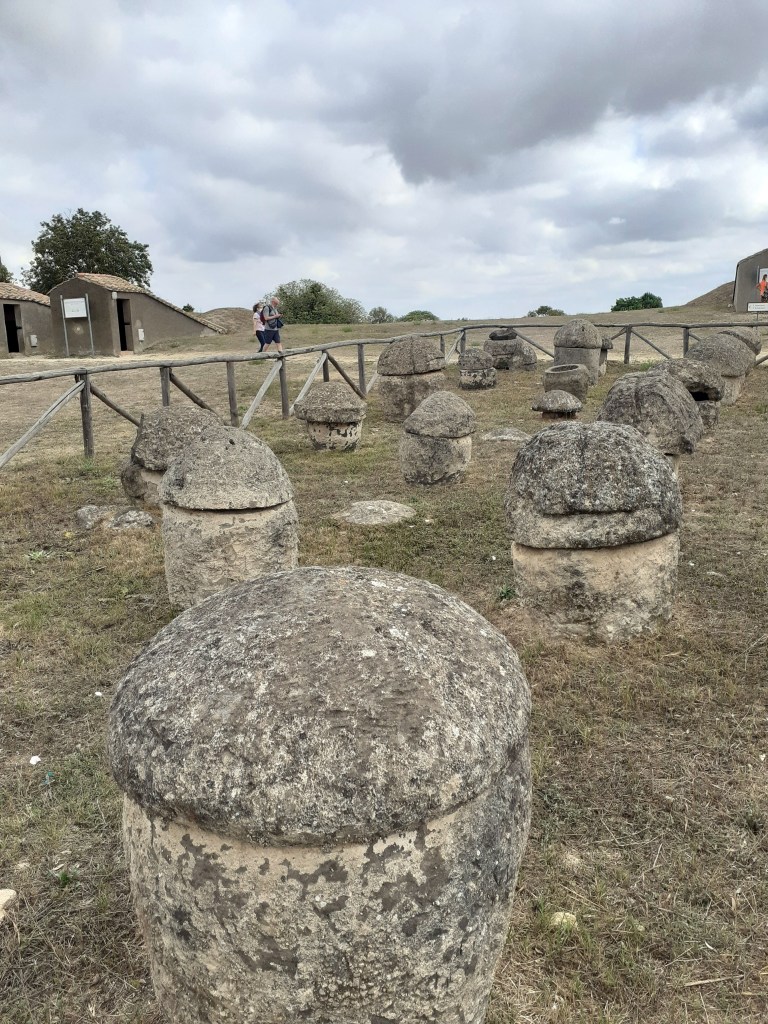 Tombe a funghetto nella necropoli etrusca di Tarquinia. (Mushroom-shaped tombs in the Etruscan necropolis of Tarquinia.)