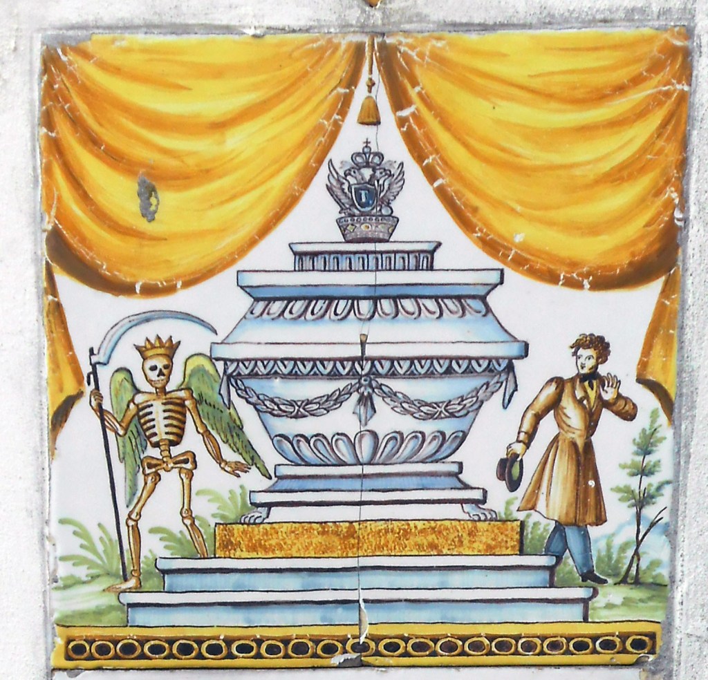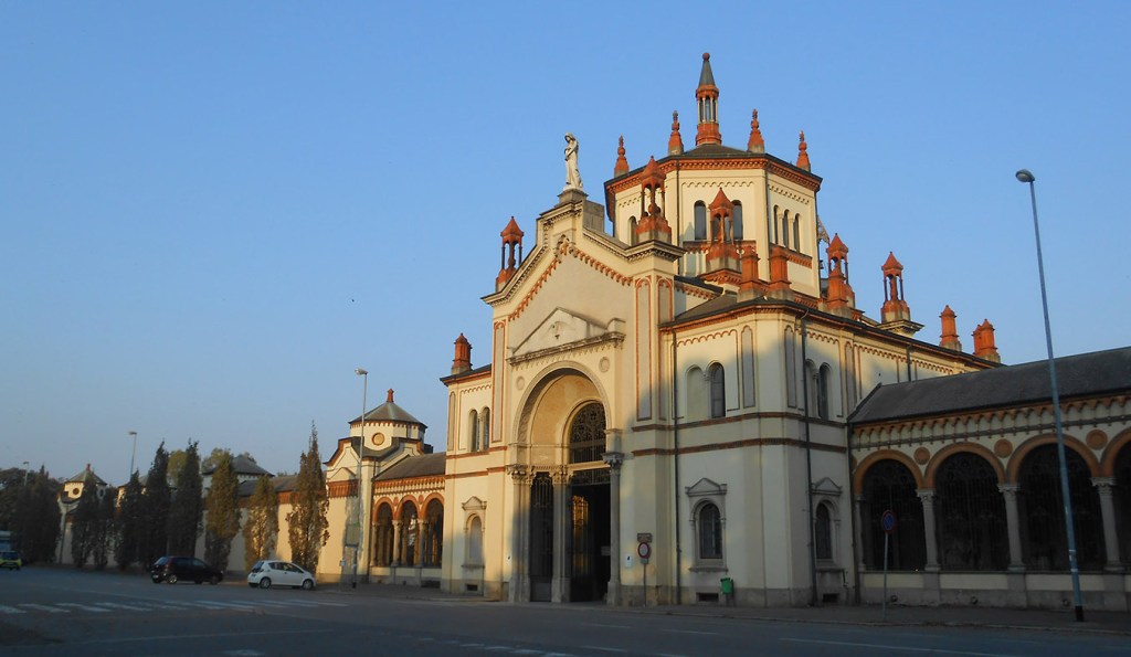 La memoria dei defunti era affidata a iscrizioni in legno andate perdute e a vivaci formelle in maiolica tipiche della produzione pavese ottocentesca, murate sul fronte interno e su quello esterno della cinta: espressione dei sentimenti di una classe media borghese che, non potendo permettersi costose lastre in marmo, affidava alla più semplice ma vivace ceramica il ricordo di una vita operosa. (Puoi vederle qui: Lapidi dipinte al cimitero di Pavia).